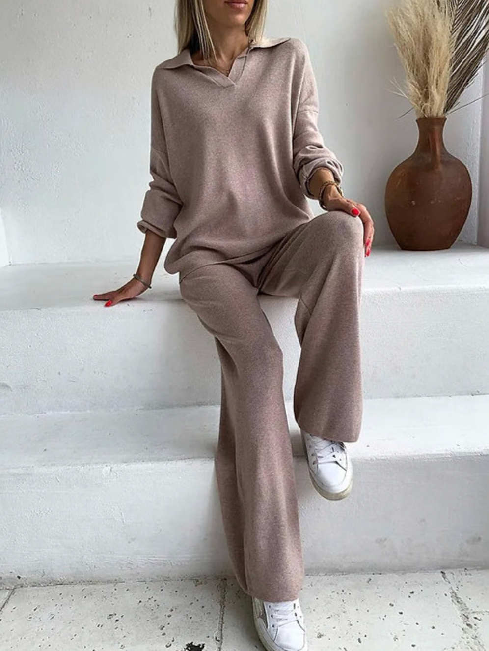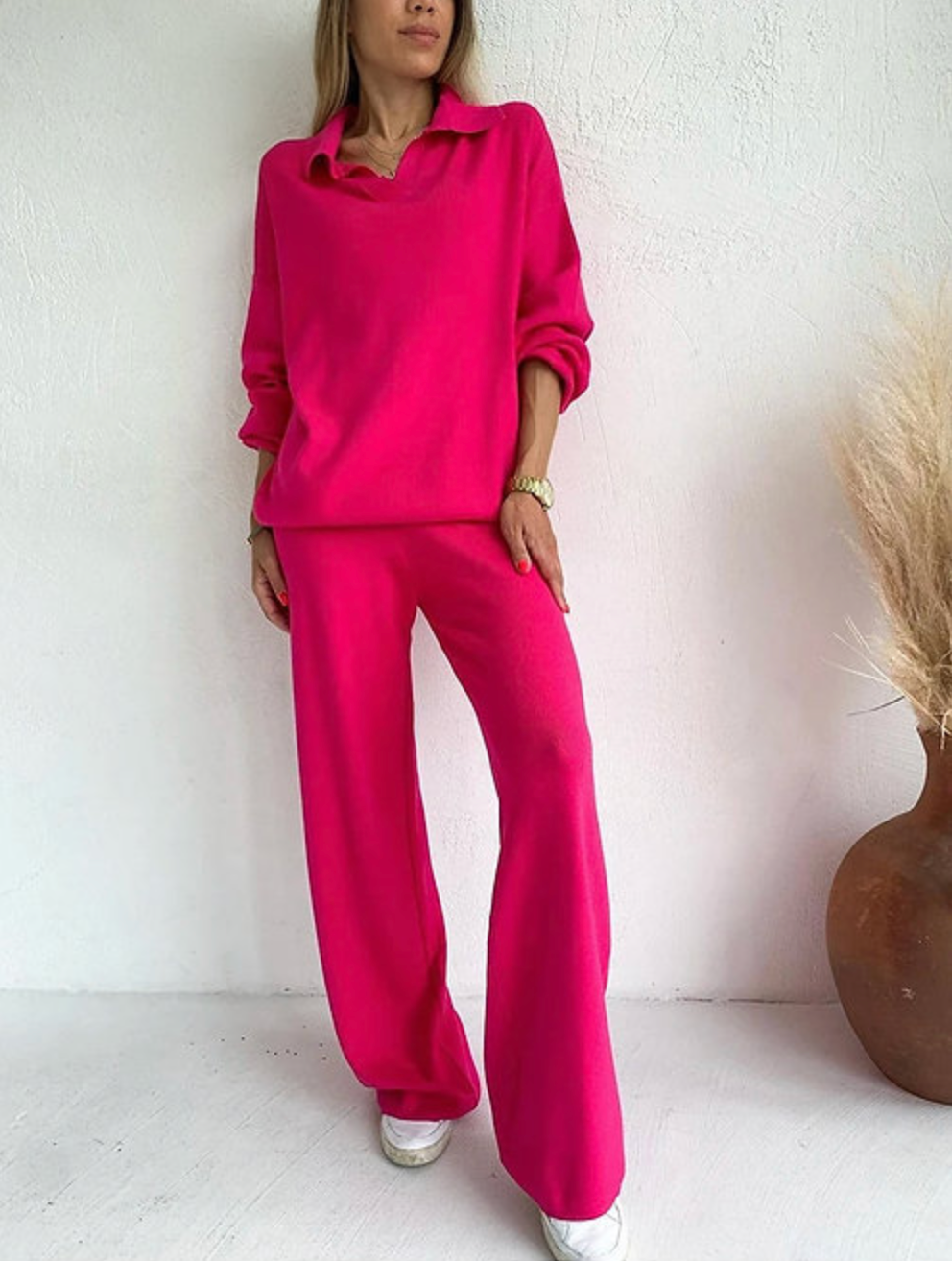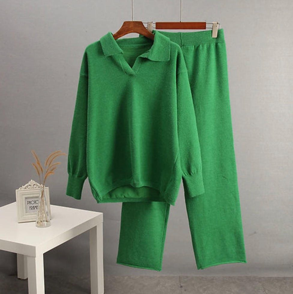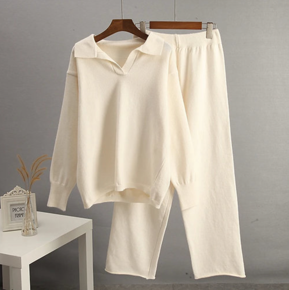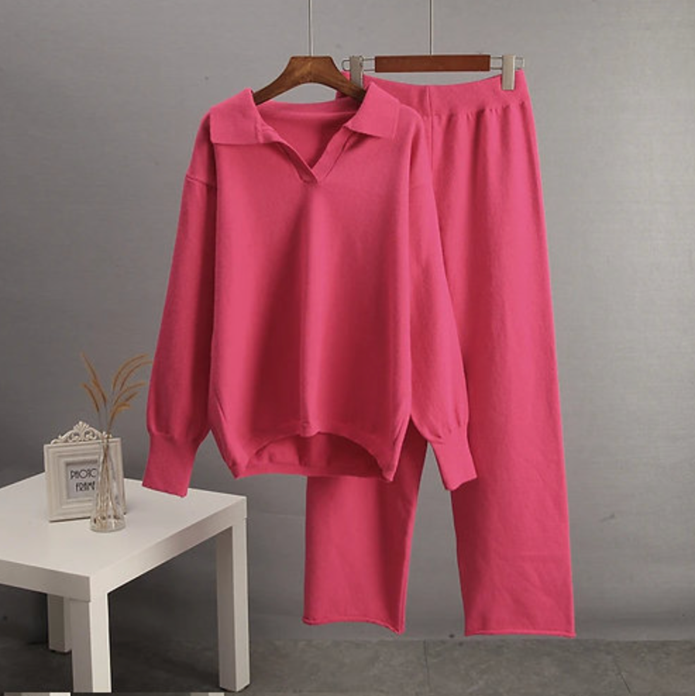 Collared Neckline Knitted Sweater & Trousers Lounge Set
