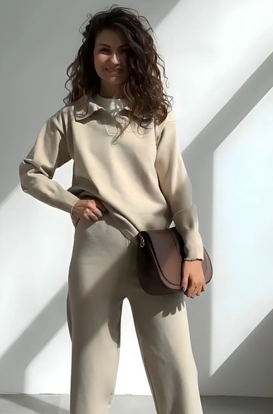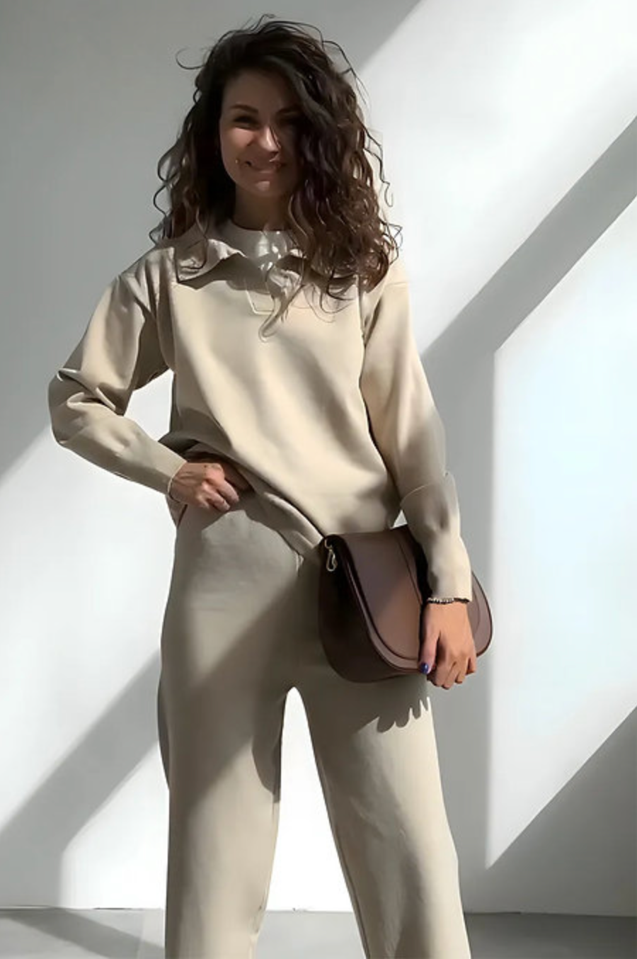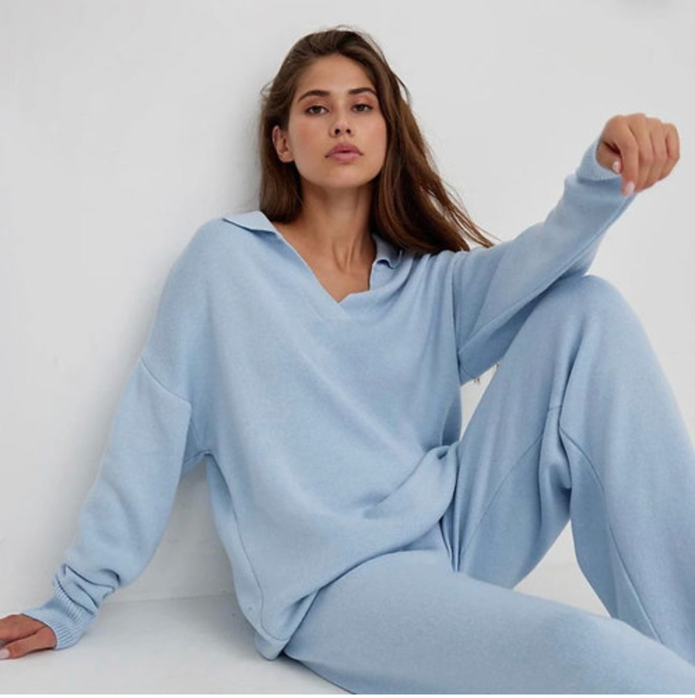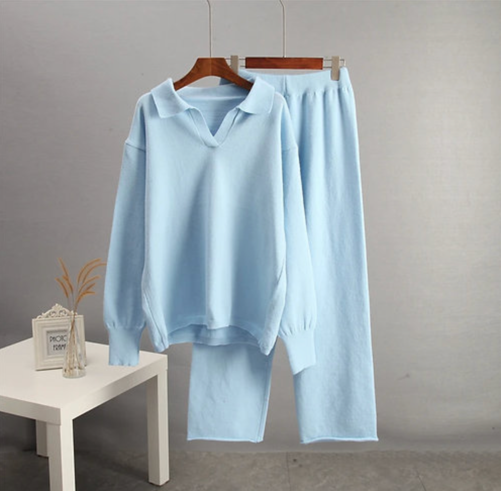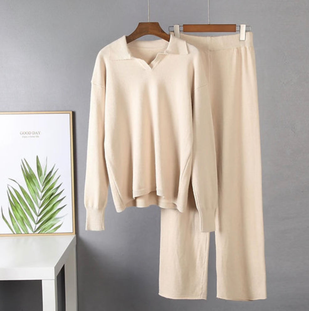 Collared Neckline Knitted Sweater & Trousers Lounge Set