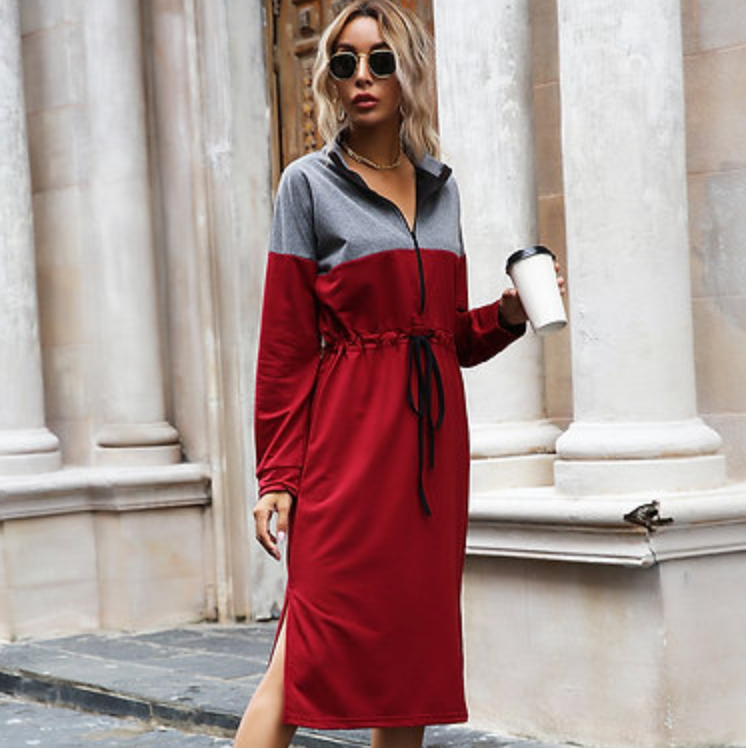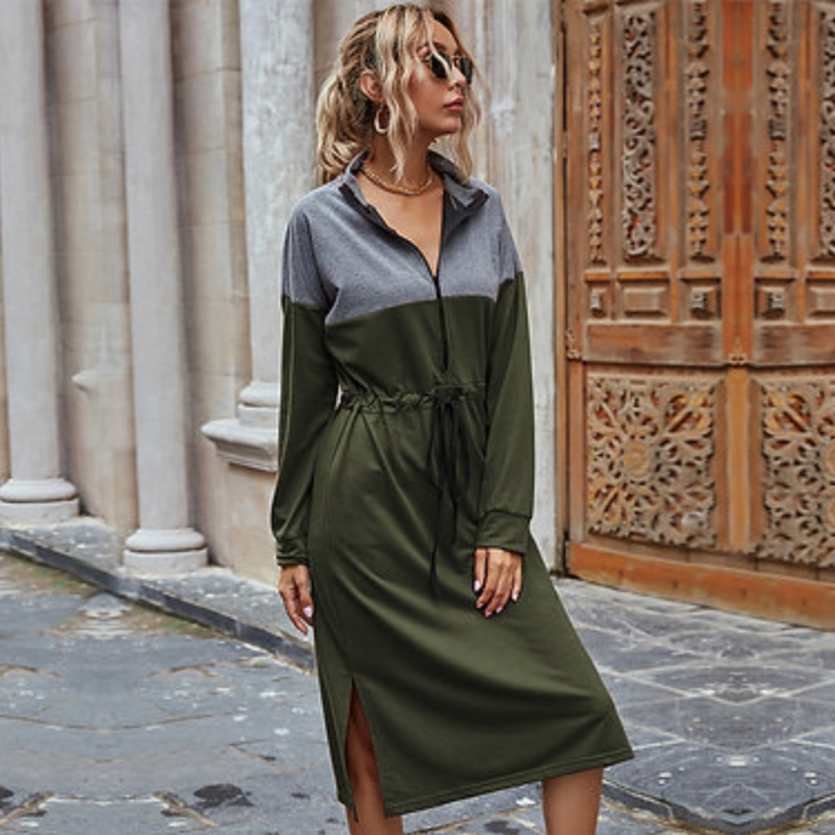 Colour Block Dress with Zip Collar