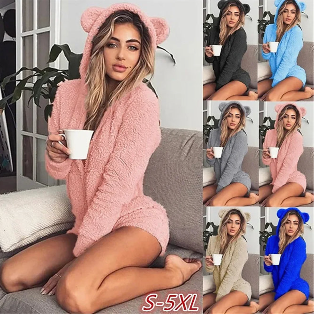 Fleece Bear Ears Hooded Playsuit