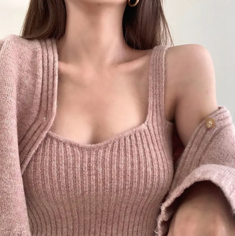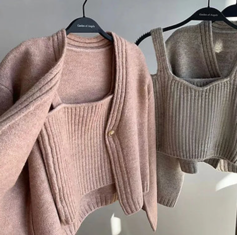Knitted Cami Vest & Cardigan Sweater 2-Piece Set