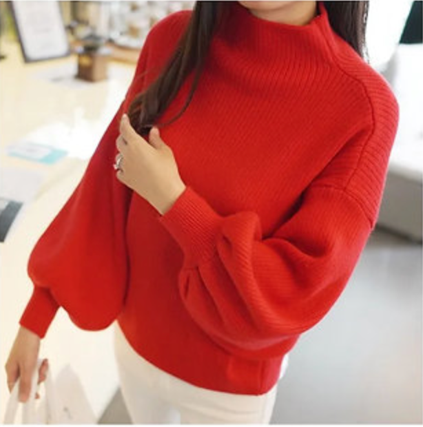 Puff-Sleeve Knitted Sweater