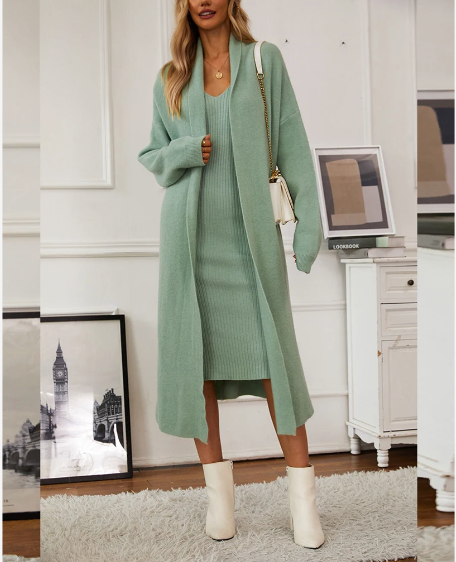Soft Elegant Midi Dress + Co-ord Cardigan Set