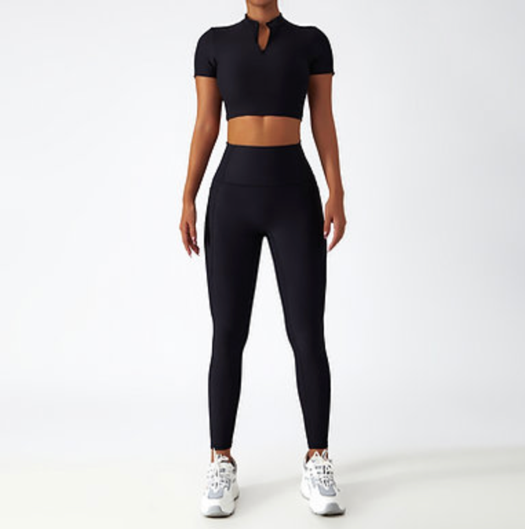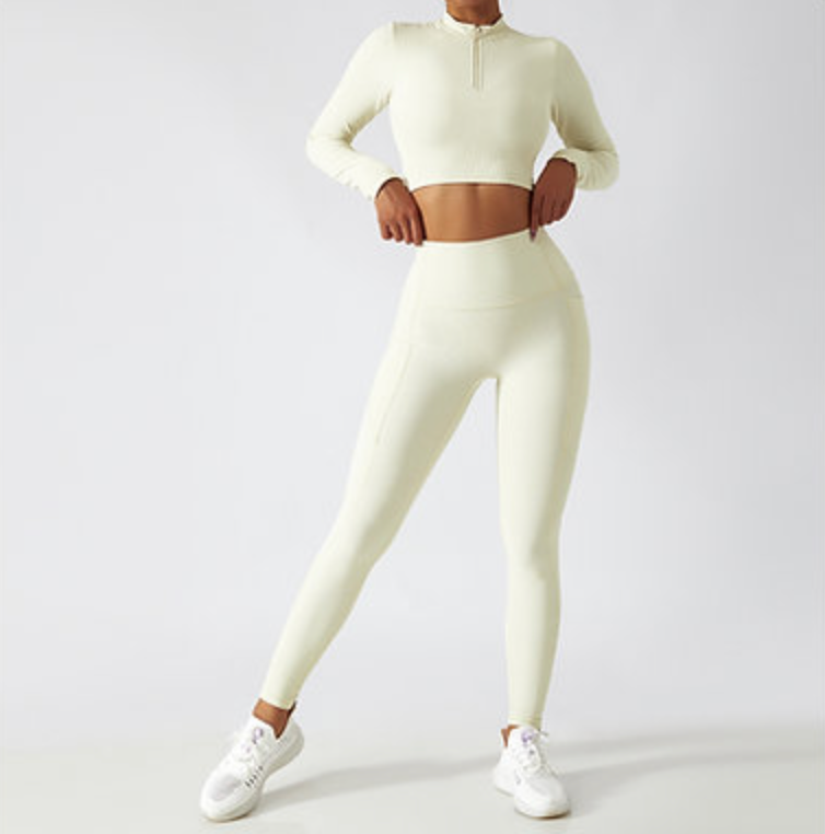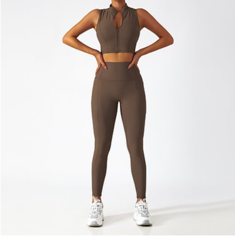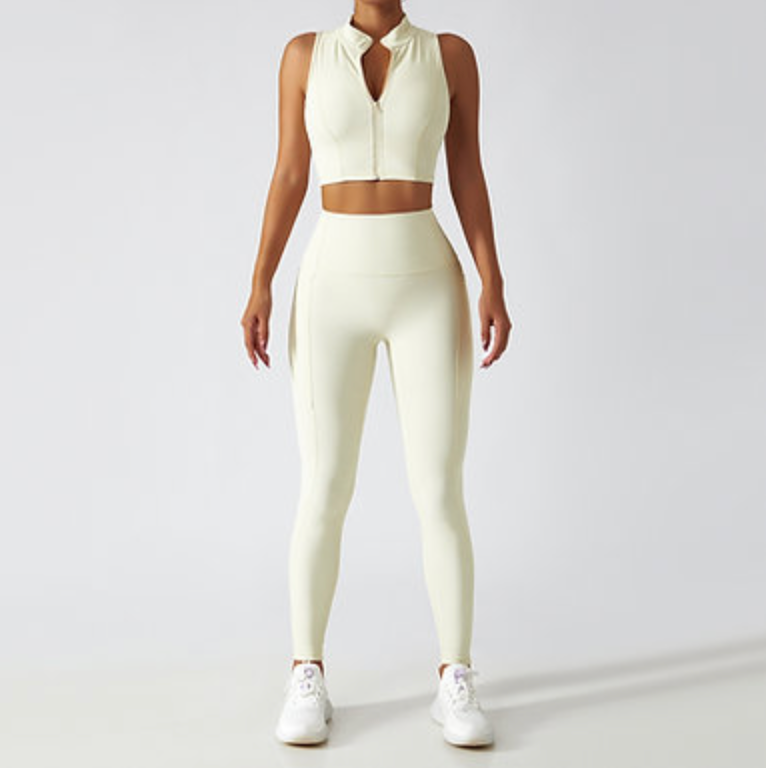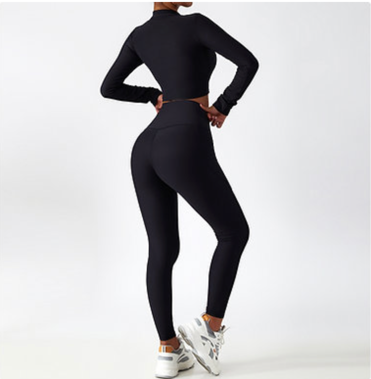 Zip-Up Active Top & Compression Leggings duo Set (Long / Short / No Sleeves)