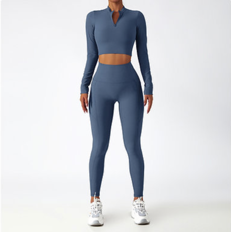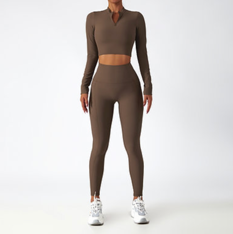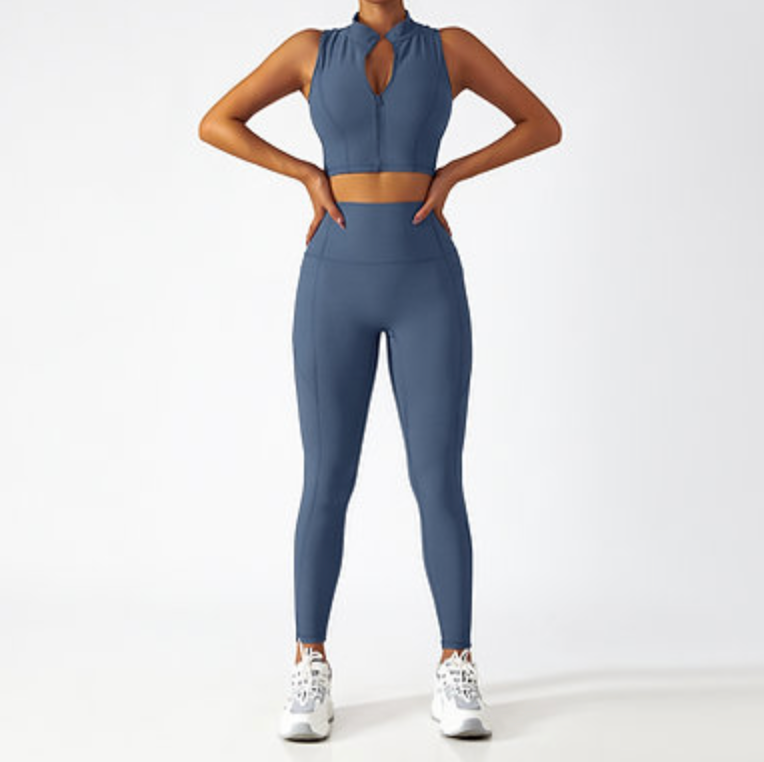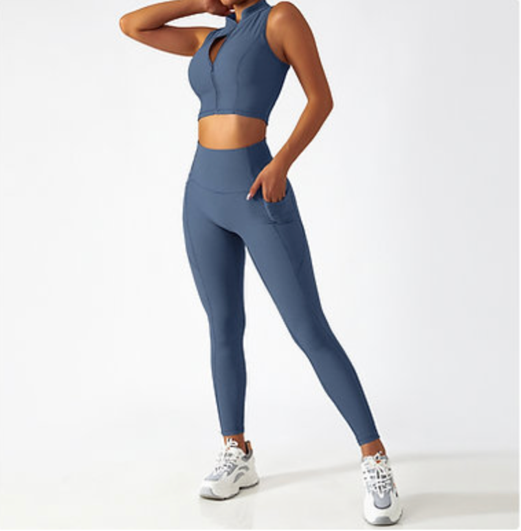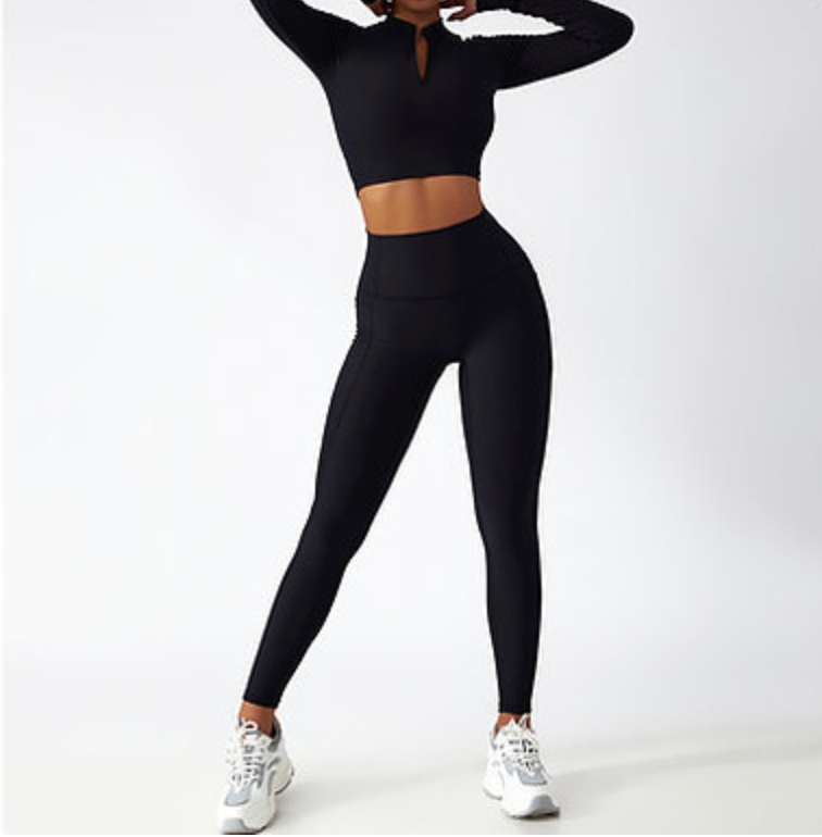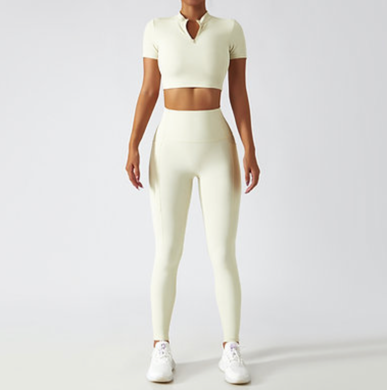 Zip-Up Active Top & Compression Leggings duo Set (Long / Short / No Sleeves)